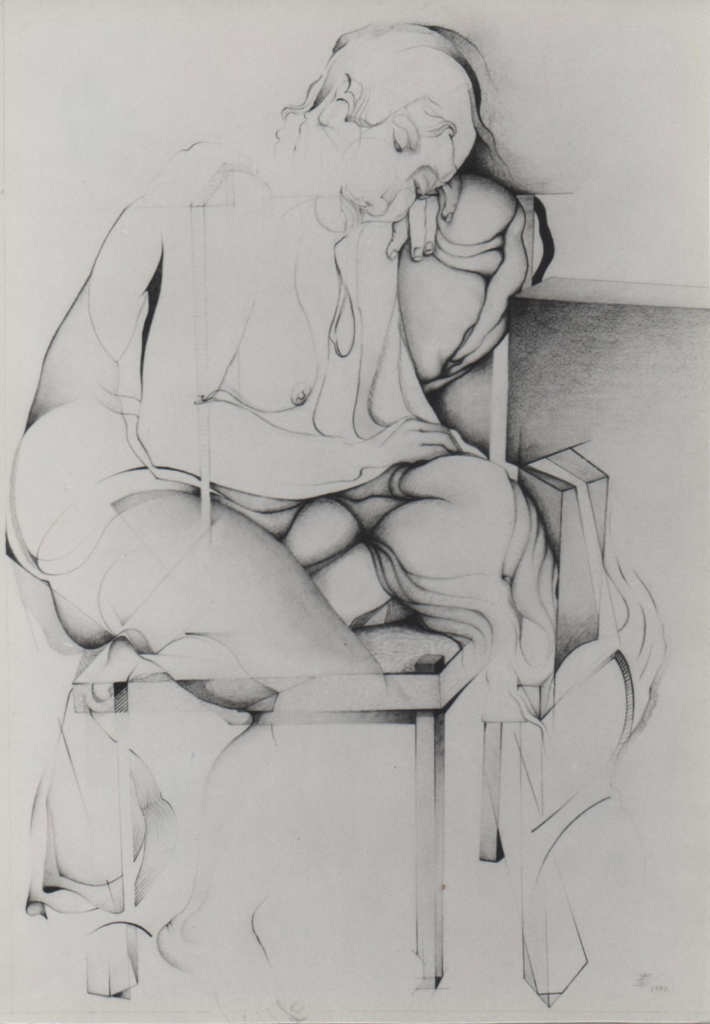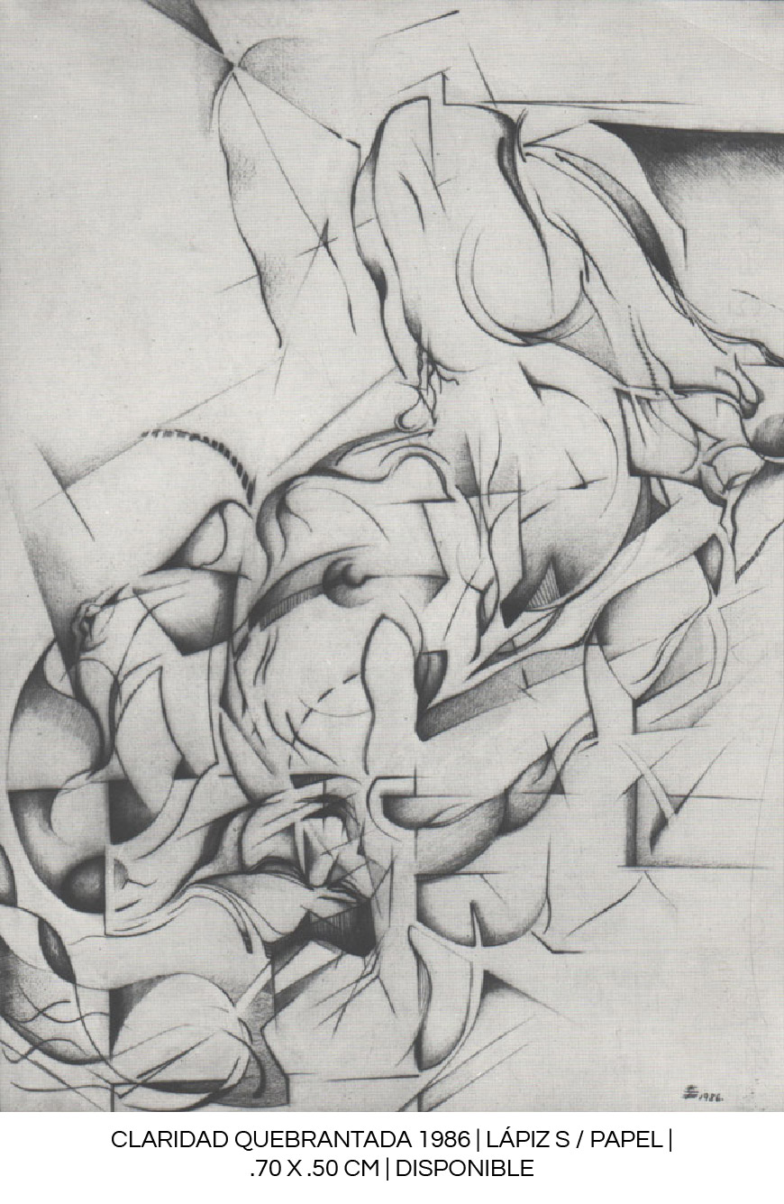 “Emilia traza el cuerpo de mujeres serenas, algunas asoman sus caras en medio de la penumbra, otras se quedan en el escondite onírico en que las sitúa… desnuda humanidad de pechos, manos y ombligos, sexos ocultos que son la antesala de un laberinto llamado vientre o entraña, galaxia o sencillamente vida.”
