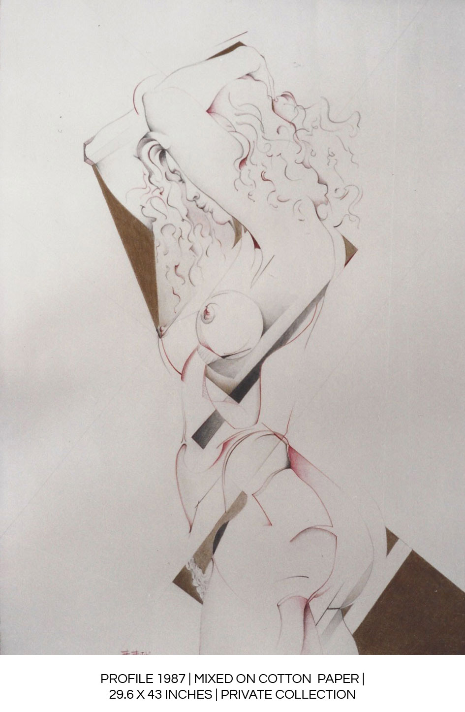 “Emilia uses the graphite pencil, but also the brush with ink or paint, to achieve the effects of rupture and explosion of the human figures.”