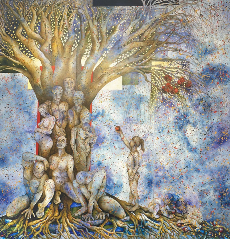 “Nos muestra a la tercera edad como un árbol en el que también se conjuntan todas las edades. La vida es una totalidad que no tiene trozos ni partes. Cada instante de la vida es la vida entera. Cada momento actual es el resultado de todos los momentos del pasado y de todas las posibilidades del ser. Este árbol es un instante de tiempo que se abre y nos muestra en su interior todos los momentos, como una corriente continua que va mudando su forma… Construye este árbol de tronco fuerte y sólido, entre un fluir de raíces, que son origen y un fluir de ramas que tocan lo inefable.