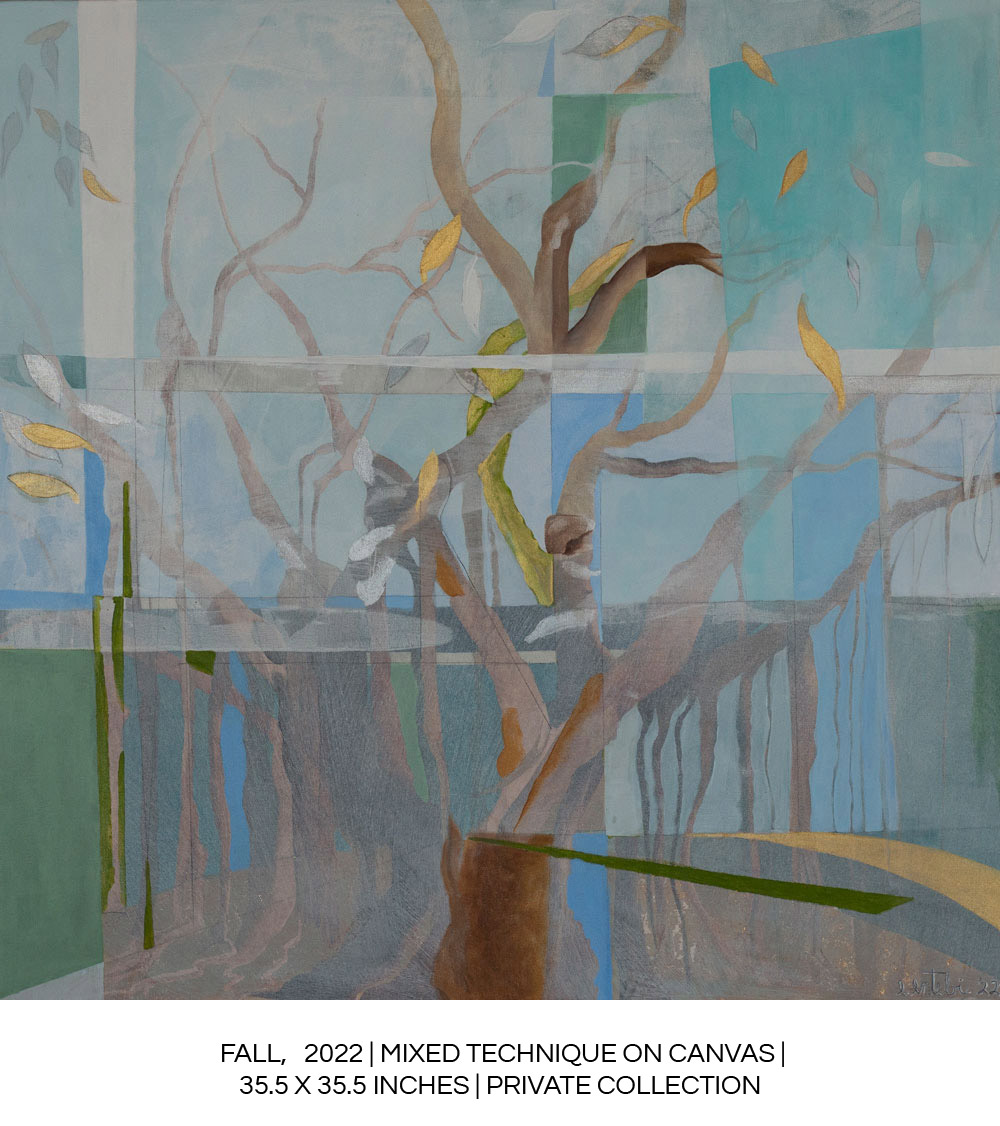 FALL, 2022 | MIXED TECHNIQUE ON CANVAS | 35.5 X 35.5 INCHES | PRIVATE COLLECTION