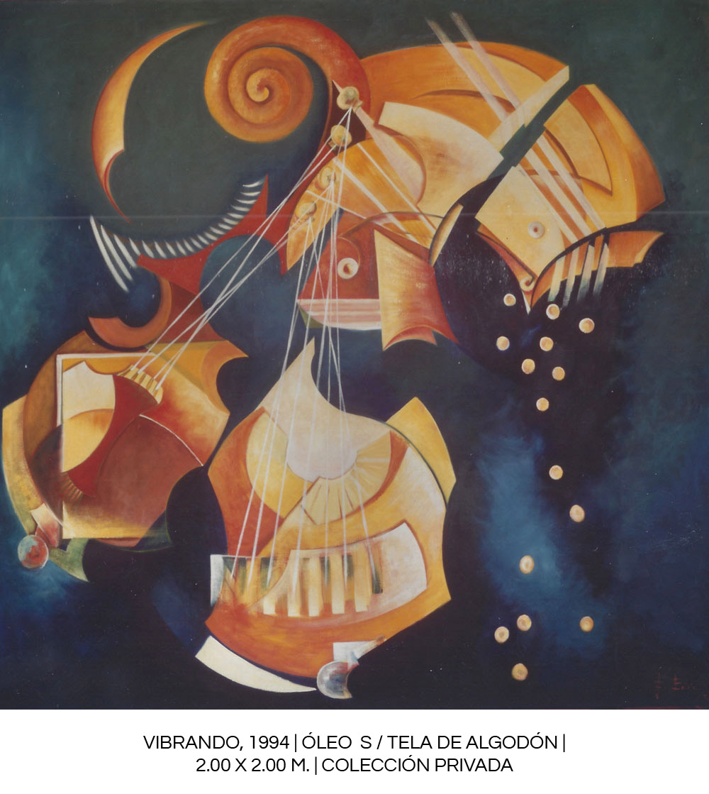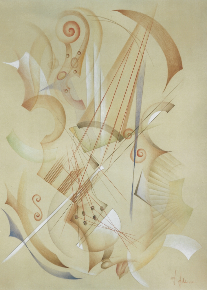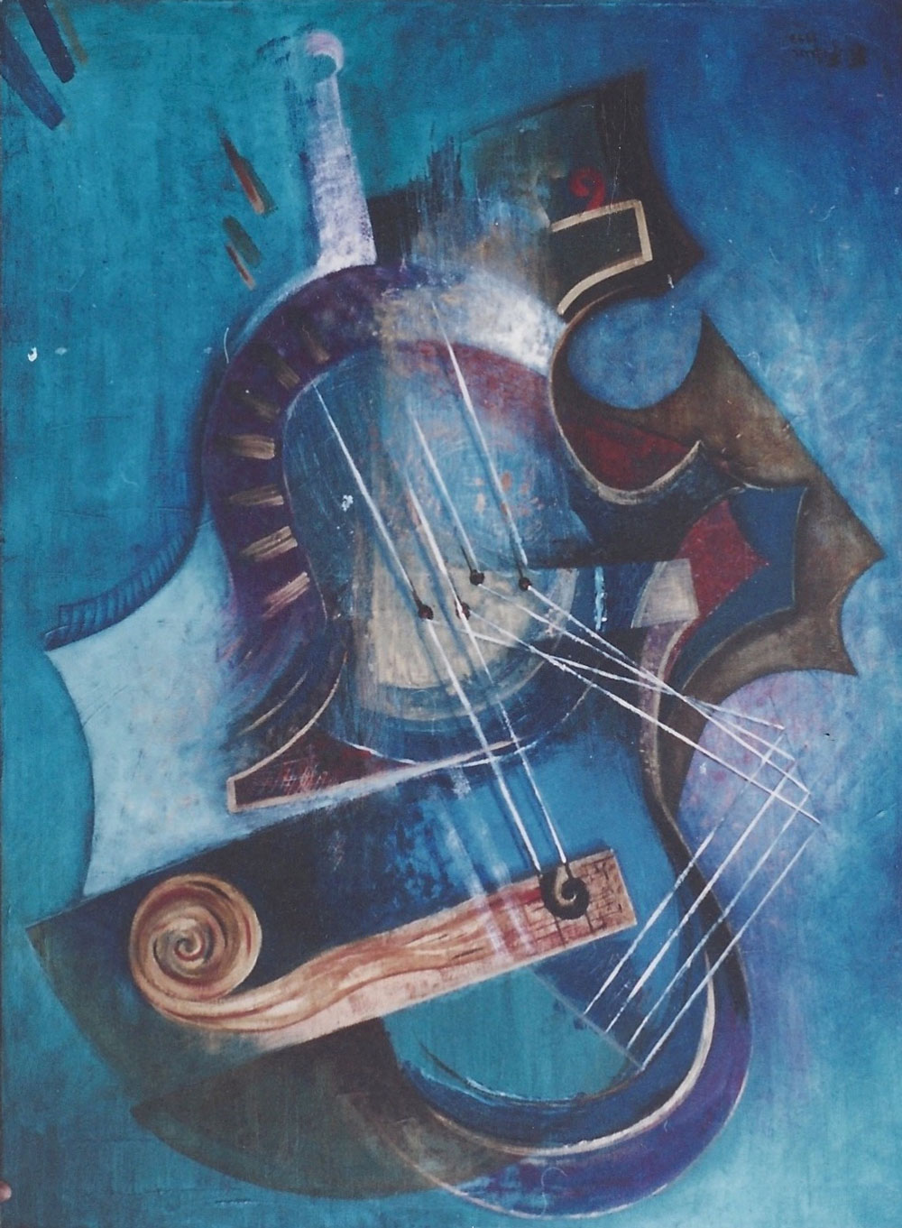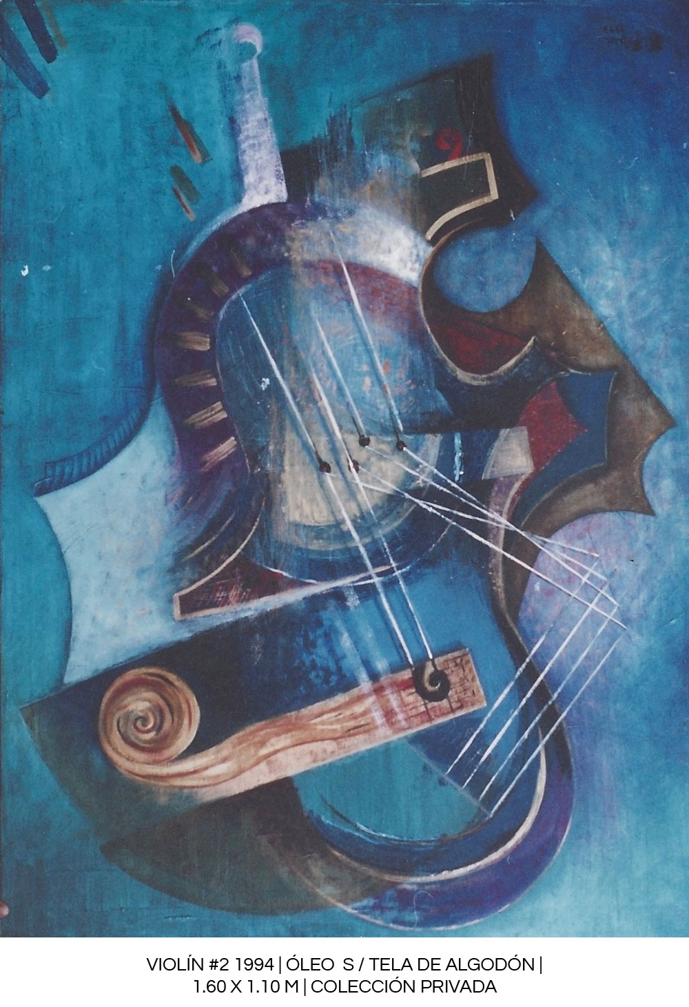 “La estructura rígida del cuadro es rota así por la vibración de líneas, tonos, toques de color y curvas que a veces figuran parte clave del violín.”