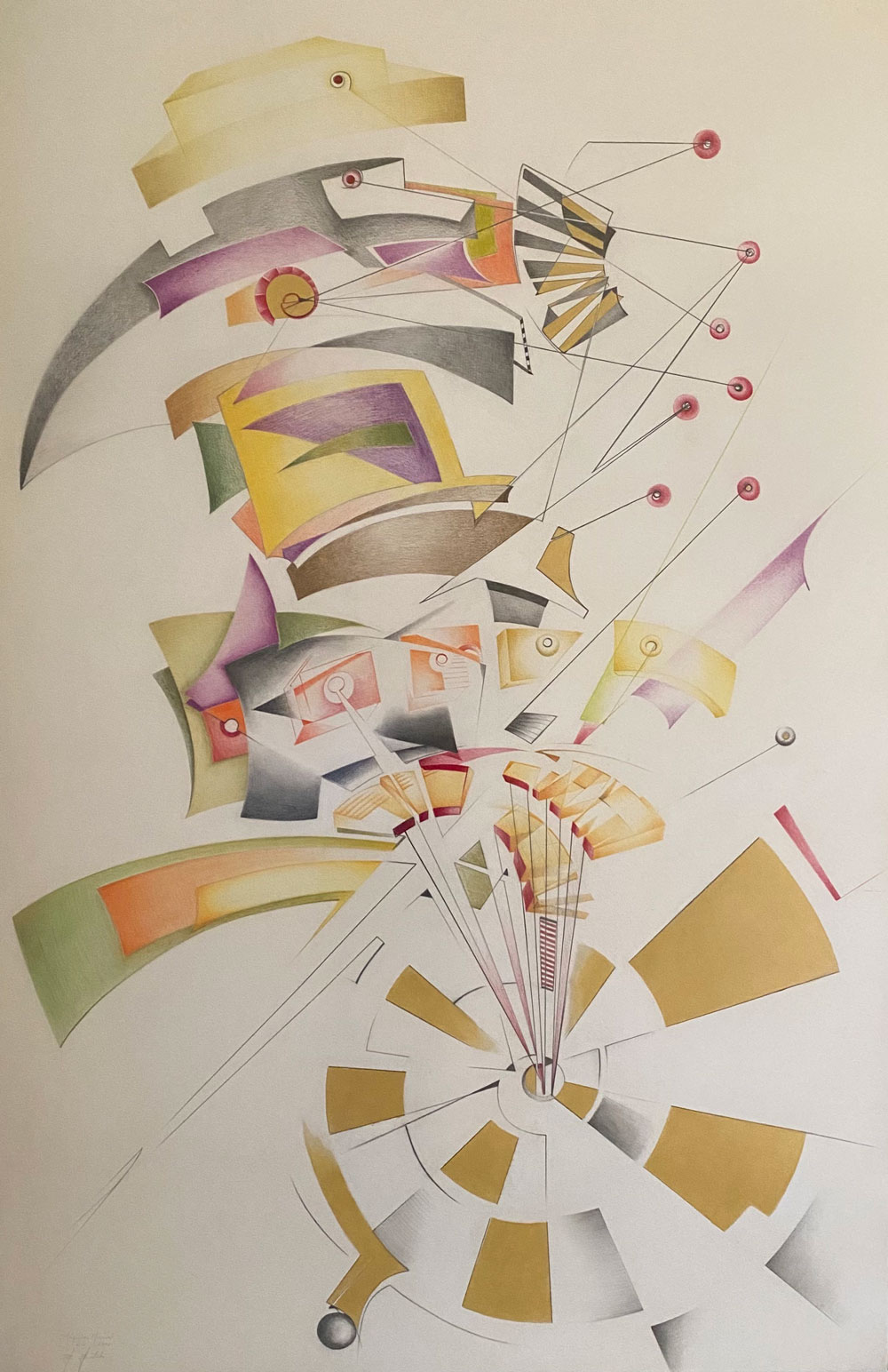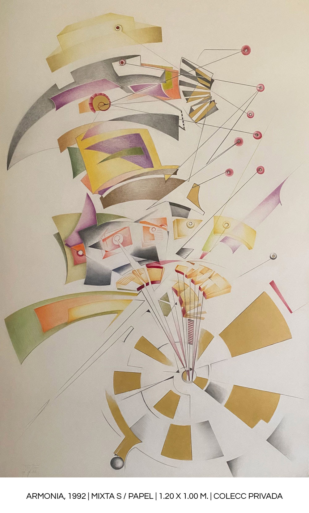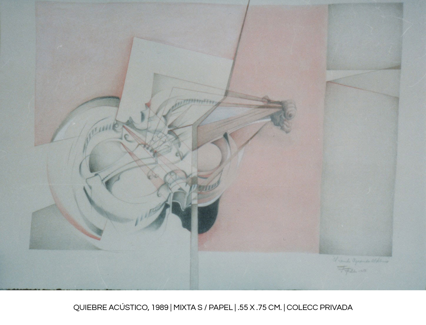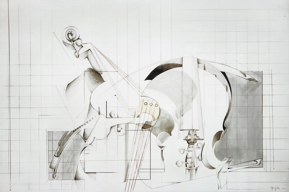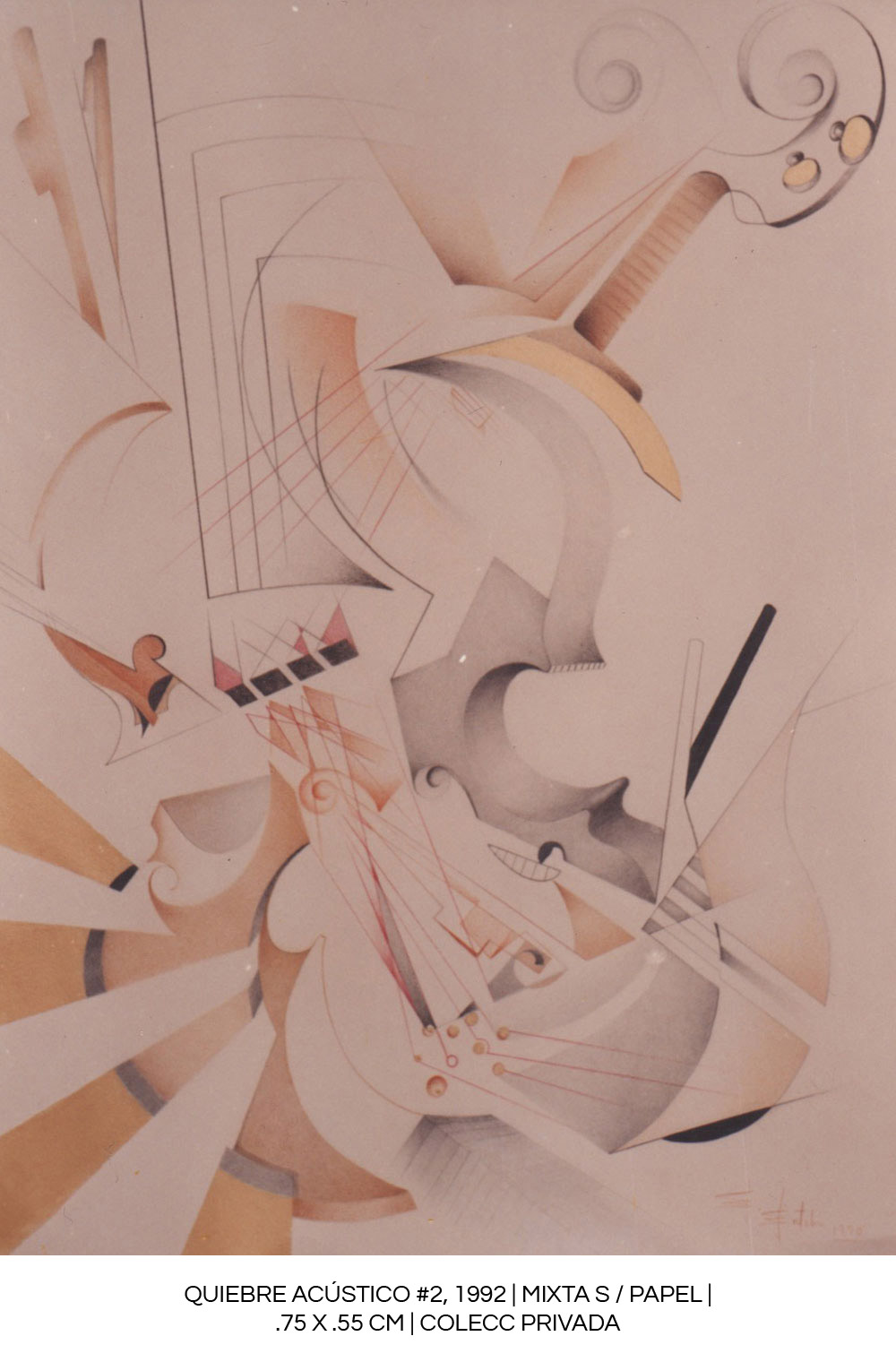 “Sus obras musicales usan la referencia al instrumento imaginario para dar lugar a un sentido de vibración, de ritmo, todo mediante composiciones continuas, juego de curvas y rectas que se entrecruzan.”