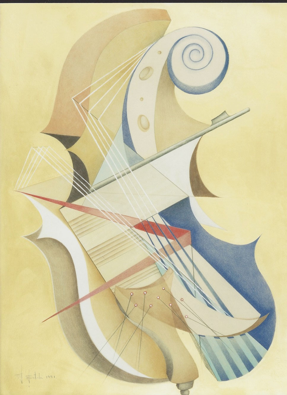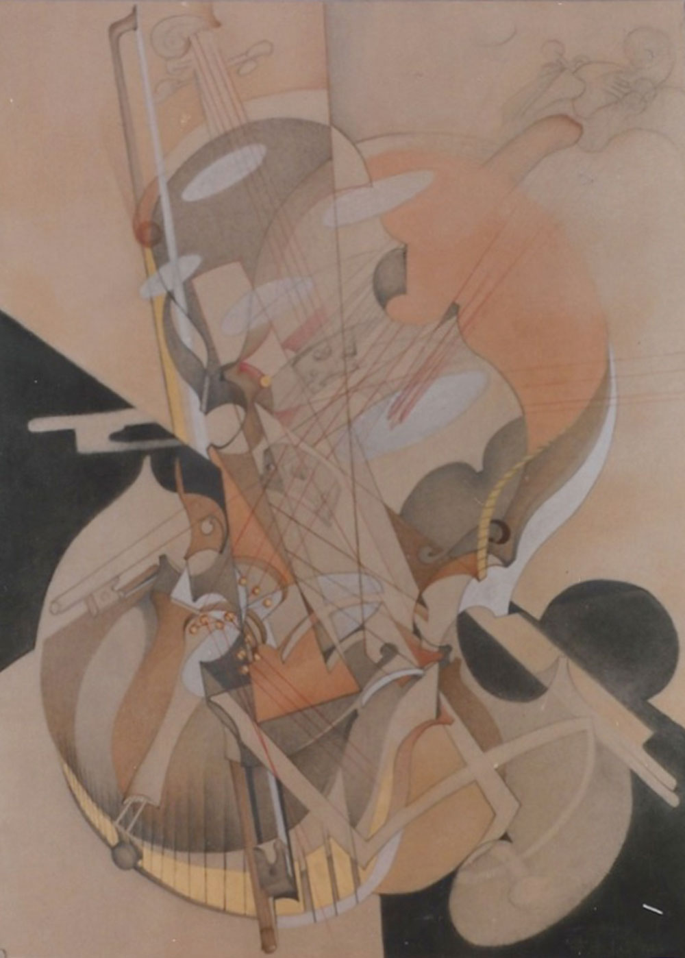 “Empezó a pintar instrumentos musicales de cuerdas convenientemente fragmentados para dar la impresión de vibración.”