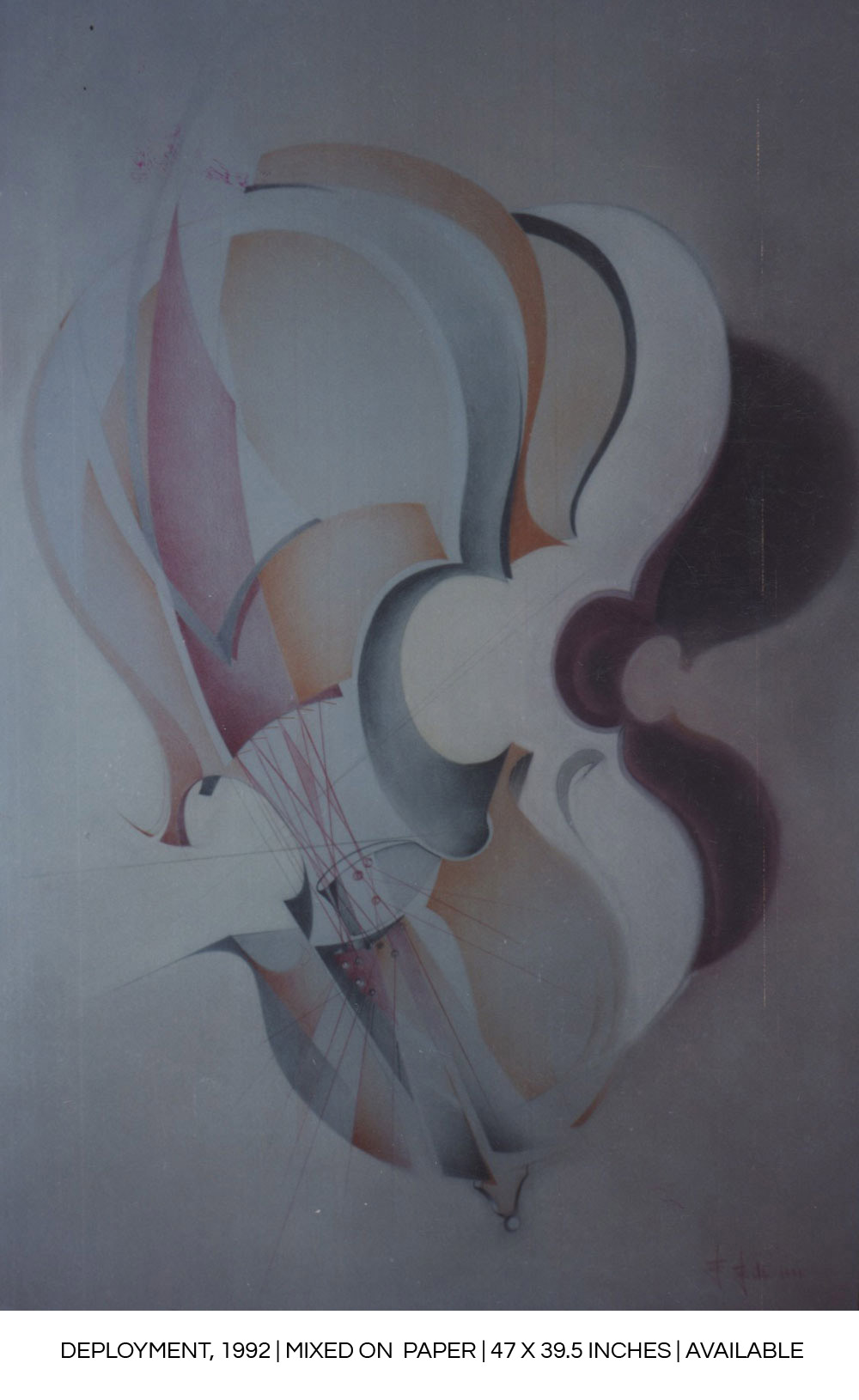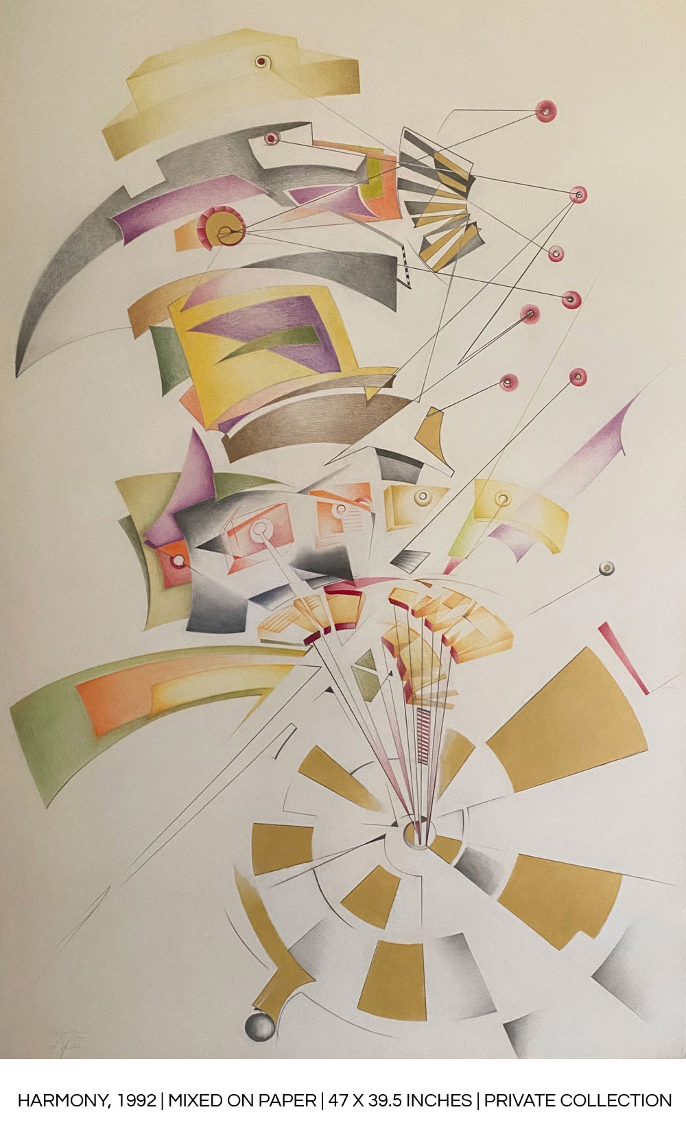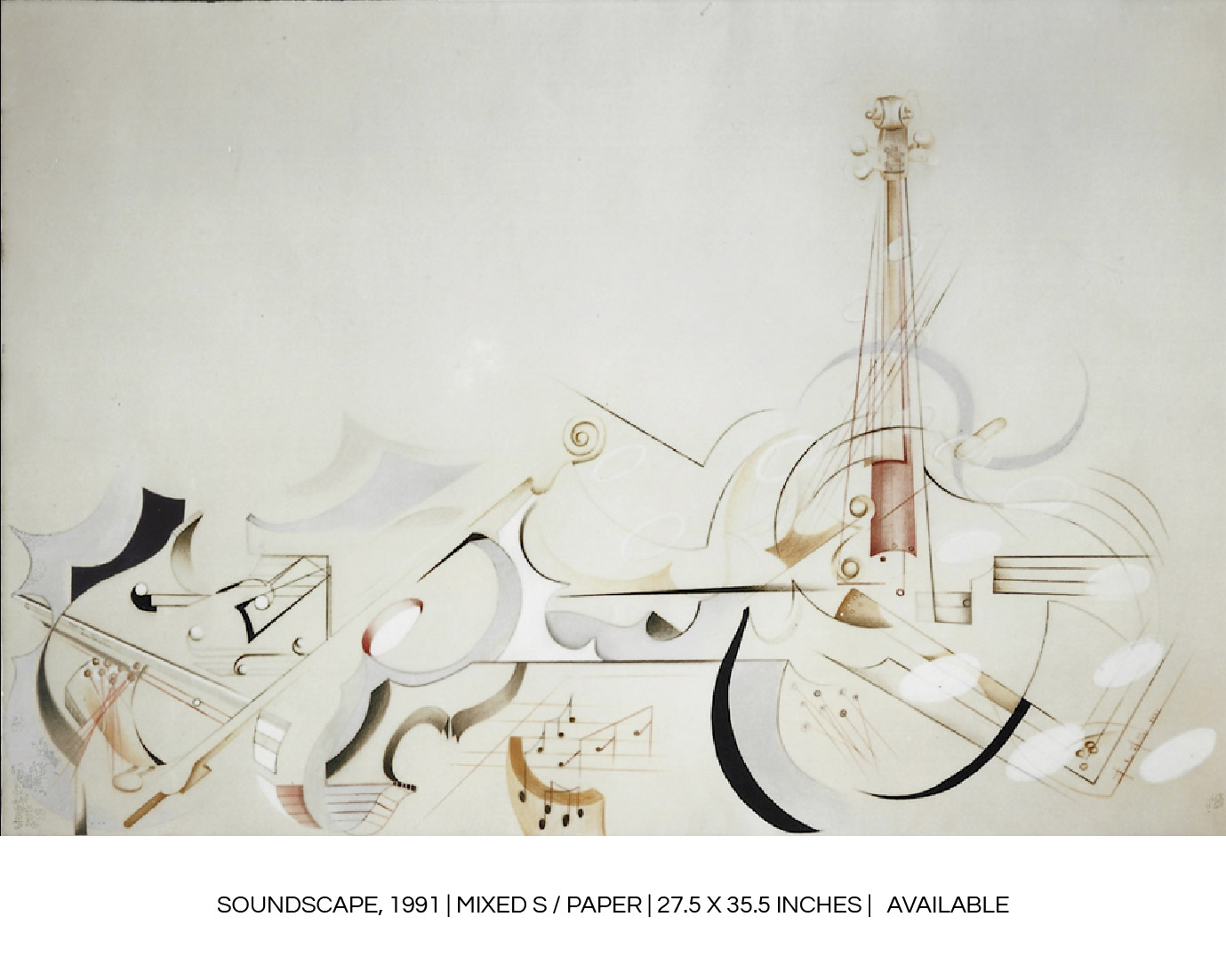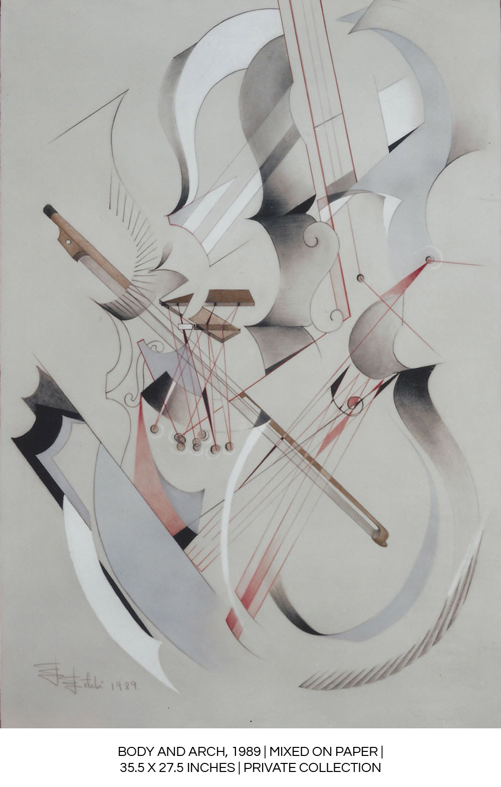“Hermusical works use the reference to the imaginary instrument to give rise to a sense of vibration, of rhythm, all through continuous compositions, a game of curves and straight lines that intersect.”