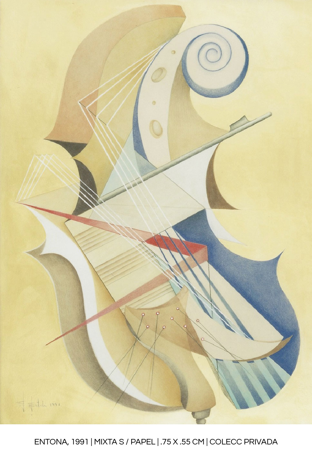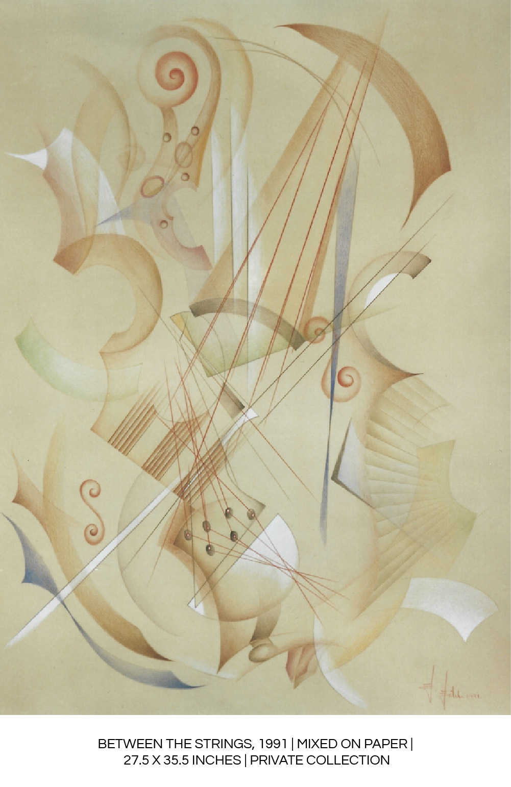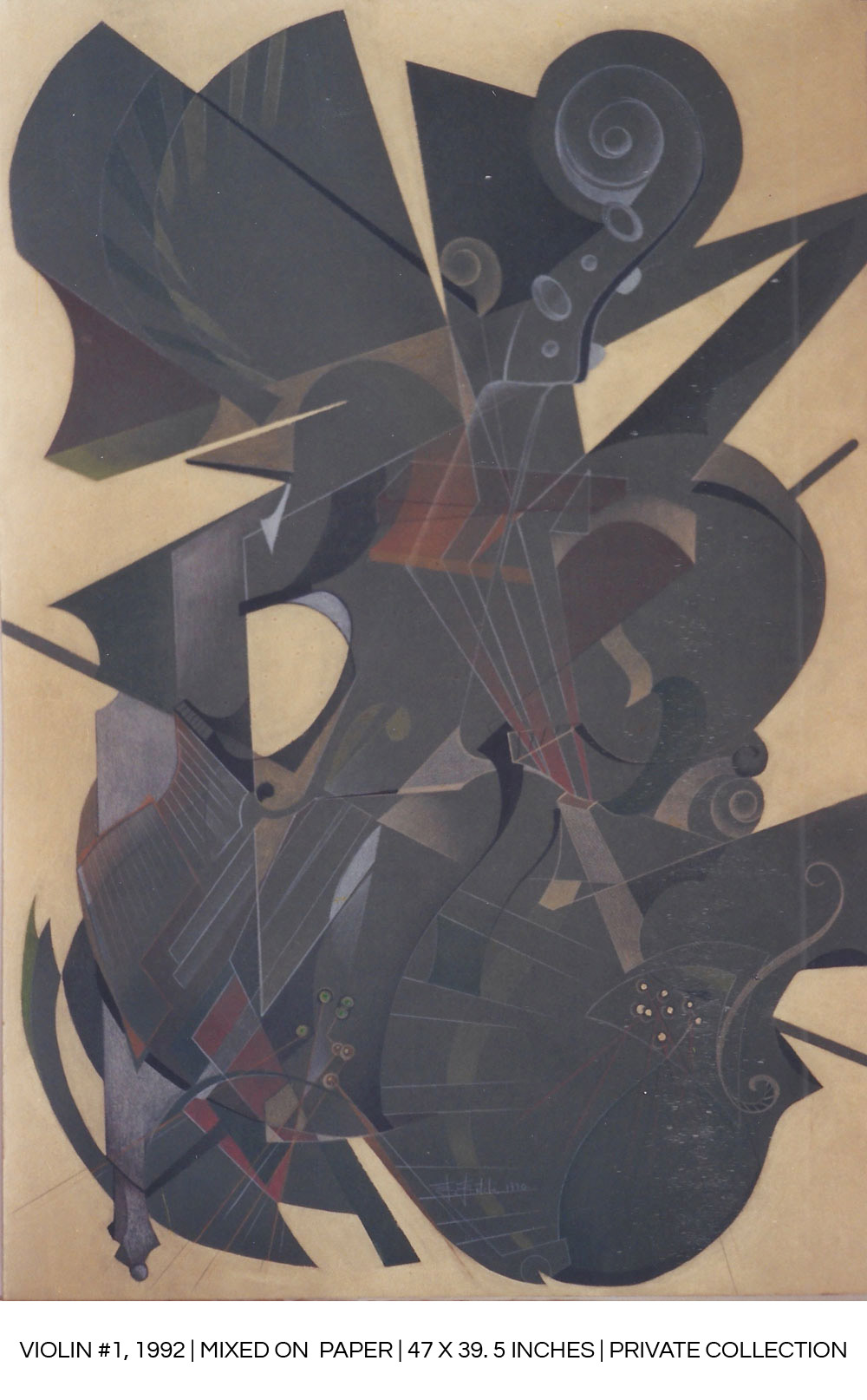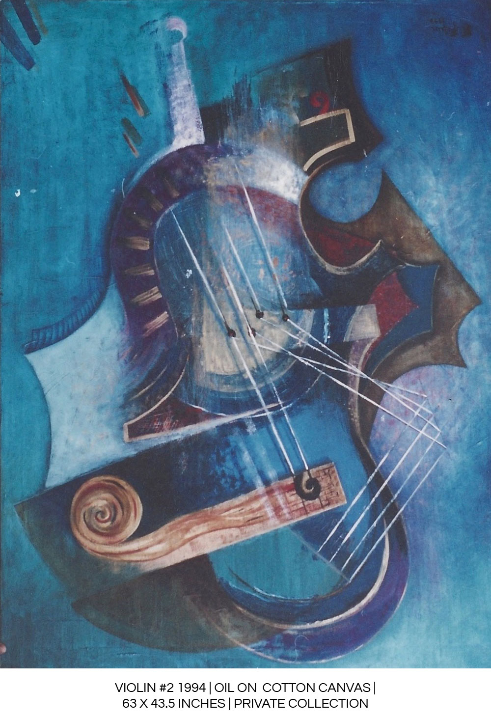 “The rigid structure of the painting is thus broken by the vibration of lines, tones, touches of color and curves that are sometimes a key part of the violin.”